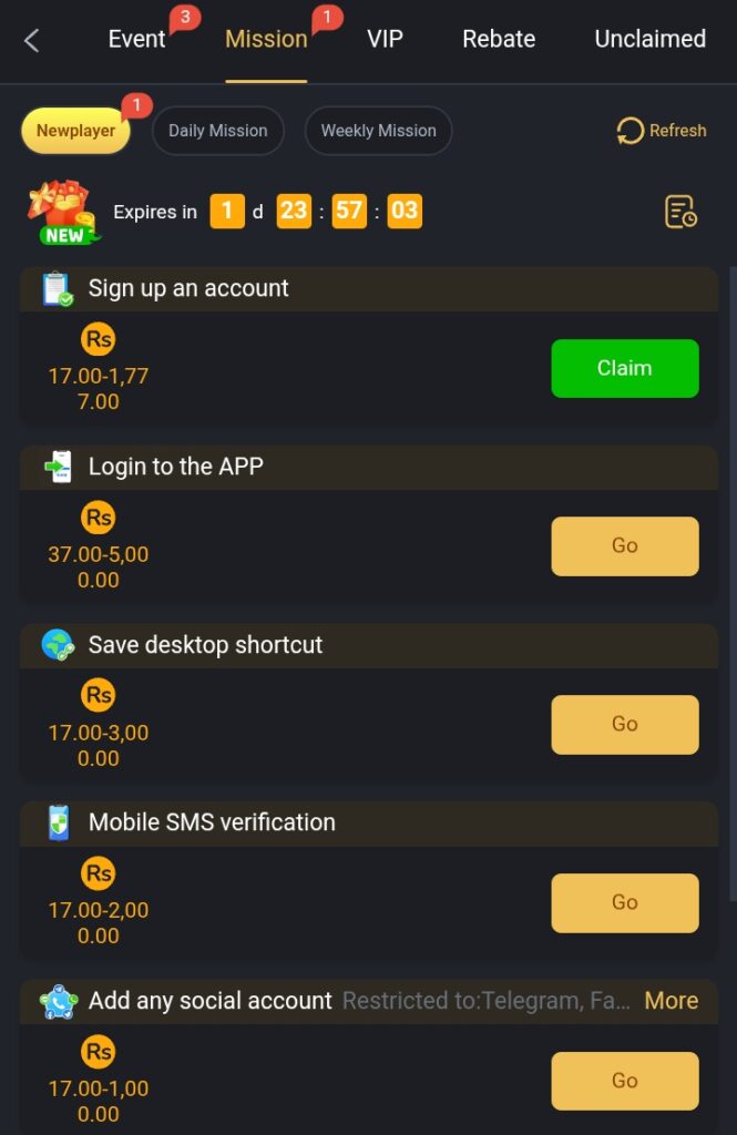 Missions give daily or weekly goals. Players complete tasks like playing games or making deposits. After completion, rewards get added to account.