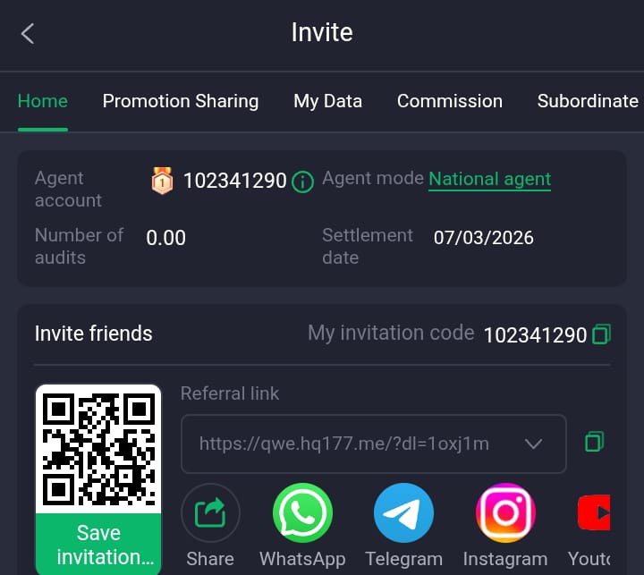 Players receive bonuses when they invite friends to join the platform using their referral code. Once the invited user registers and becomes active, the system credits a reward to the inviter’s account.