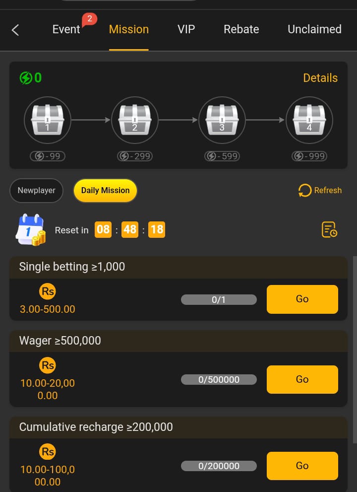 Missions provide fixed rewards. Users follow clear steps and collect bonuses easily.