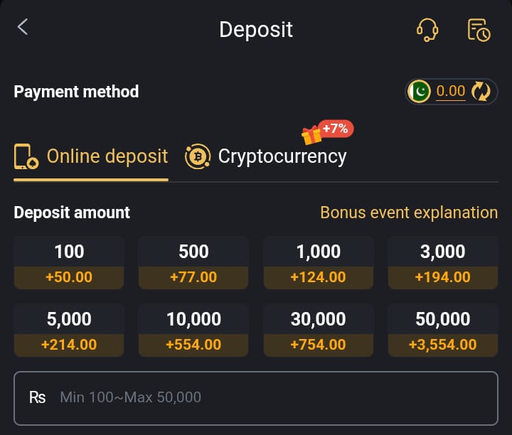 - Click deposit option.